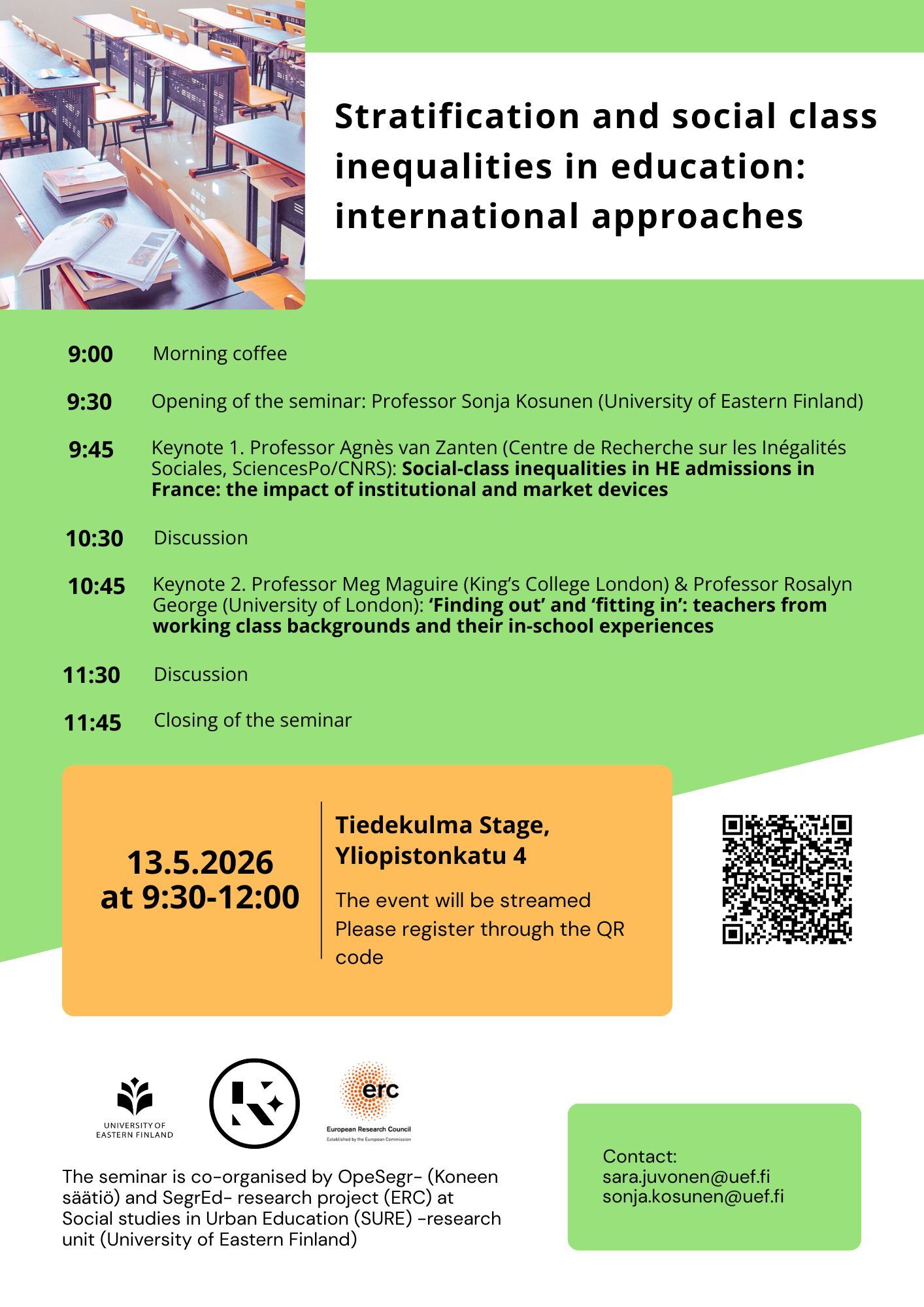 Opettajasegregaatio Suomessa (OpeSegr) -hankkeessa (Koneen säätiö 2024–2028, PI Sonja Kosunen) tarkastellaan opettajasegregaation ilmenemistä kelpoisten ja ei-kelpoisten erityisopettajien, varhaiskasvatuksen opettajien, luokanopettajien ja aineenopettajien osalta aiemmin tuotettujen kysely- ja haastatteluaineistojen perusteella lukiokoulutuksessa, perusopetuksessa ja varhaiskasvatuksessa. Lisäksi hankkeessa analysoidaan opettajien taustoja ja kuvausta opettajuudesta erilaisilla alueilla.